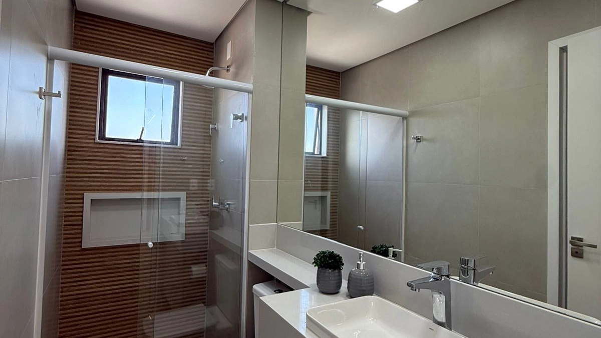 A cozinha americana integra-se harmoniosamente à sala de estar e jantar, criando um ambiente fluido e perfeito para receber amigos e familiares. A varanda gourmet é o grande destaque, equipada com pia e espaço para churrasqueira, transformando encontros casuais em momentos especiais.
